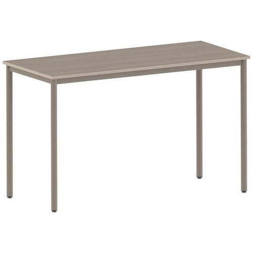 Mange debout avec plateau stratifié, dessous contrebalancement blanc, chant plaqué ABS contretypé. Piètement en tube acier, cadre soudé. Vérins de réglage non tachants et non marquants
