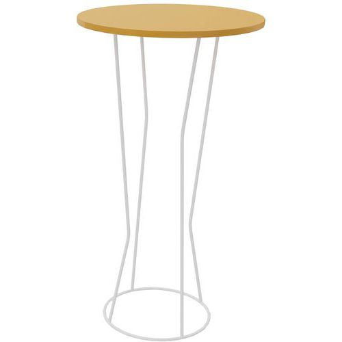 - Mange debout Cyclo avec plateau stratifié rond et piètement fil d’acier design.