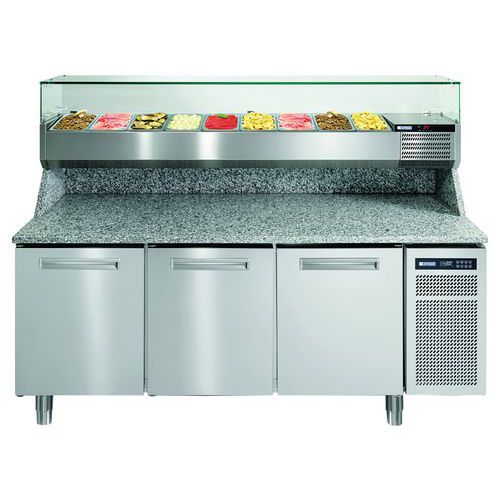 | Intitulé du produit | Meuble de préparation pizza, dessus granit et dosseret,3P- PZSPR+ 830I Afinox, Poids: 230 kg, Hauteur: 103 cm |