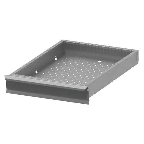 Tiroir en acier LAF, épaisseur 1 mm, à parois verticales métalliques crantées.