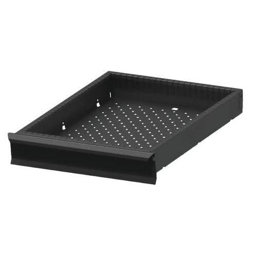 Tiroir en acier LAF, épaisseur 1 mm, à parois verticales métalliques crantées.