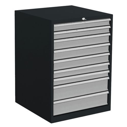 Meuble industriel à 9 tiroirs aménageables 870x1000x725 mm, Charge maxi: 1200 kg, Matériau: Acier
