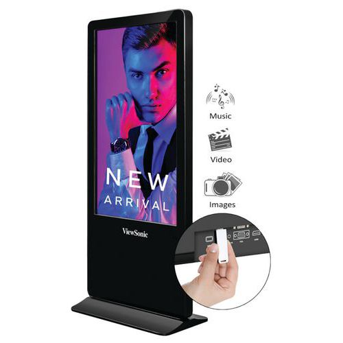 La dalle IPS 4K UHD est équipée de deux haut-parleurs stéréo de 10W, d'un grand angle de vision de 178° et d'une luminosité de 450 cd/m², ce qui permet de diffuser des images et des vidéos nettes et vivantes pour capter l'attention du public.
