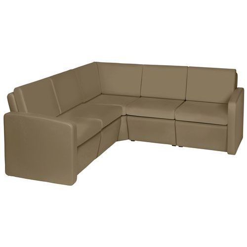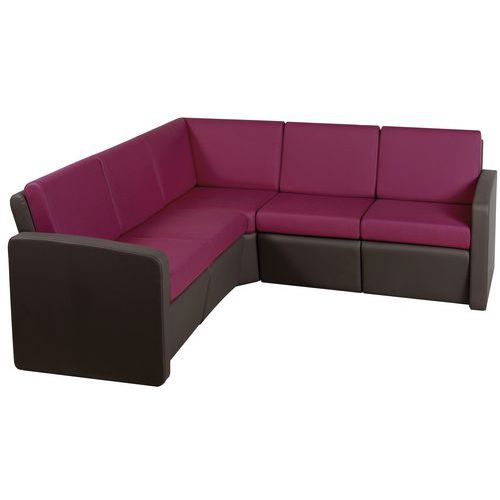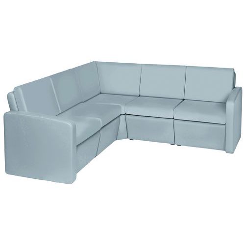 Pack accueil Khéops : 2 chauffeuses sans accoudoir + 2 chauffeuses avec accoudoir + 1 chauffeuse d'angle 90° avec coussins assise et dossier déhoussables pour faciliter le nettoyage.