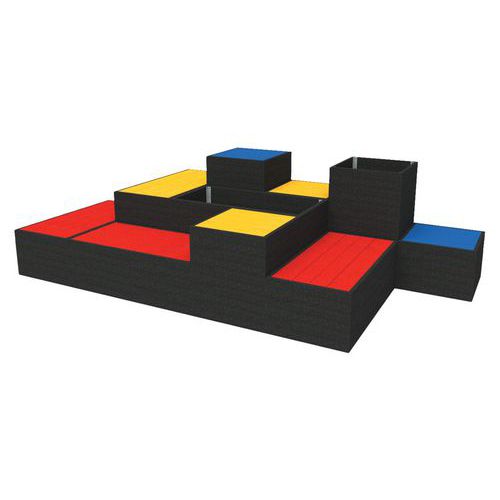 | Intitulé du produit | Pack assise modulable Cube 10 modules plastique recyclé Espace Urbain, Matériau: Polyéthylène |