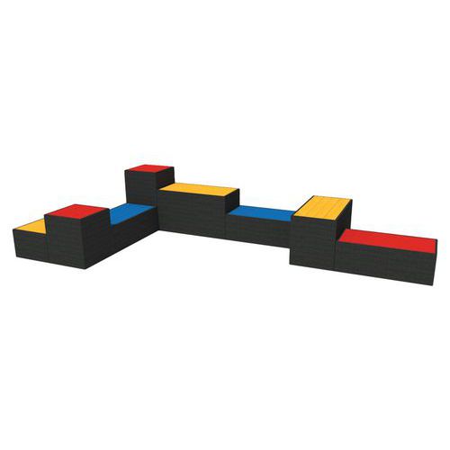 | Intitulé du produit | Pack assise modulable Cube 8 modules plastique recyclé Espace Urbain, Matériau: Polyéthylène |