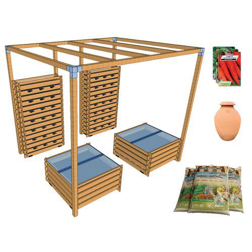 | Intitulé du produit | Pack complet : mur bac au sol pergola Carre Serre, Type de fixation: À poser, Structure matériau: Pin |