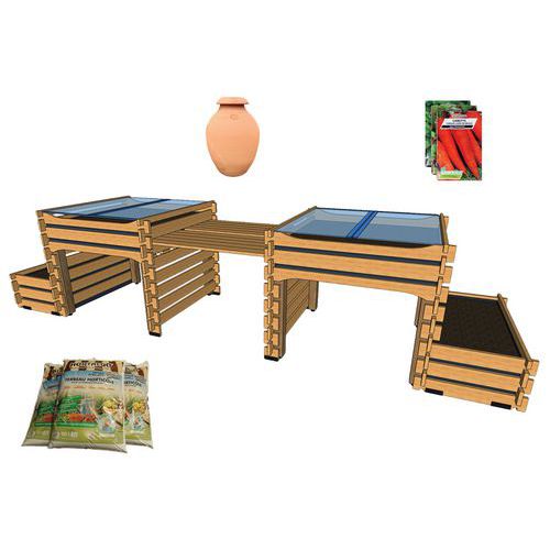 | Intitulé du produit | Pack complet : potager PMR Carre Serre, Type de fixation: À poser, Structure matériau: Pin, Longueur: 412 cm |