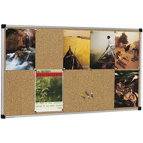2 modèles au choix, émaillé blanc ou liège, et 4 dimensions. Fond tôle, affichage magnétique ou écriture au feutre effaçable à sec. Fond liège, affichage à l'aide de punaises ou d'épingles (liège ép.1 mm). Liège aggloméré sur support en fibres de bois basse densité ép. 8 mm. Profilé en aluminium anodisé. Livrés montés.