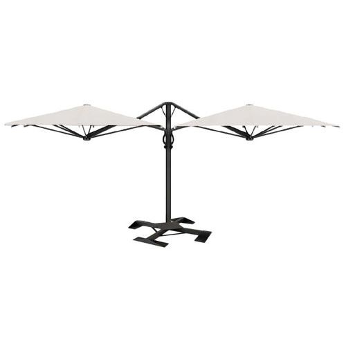 Composé de 2 parasols de 3,5x3,5 m, accrochés sur un seul mât de 110x110 cm.