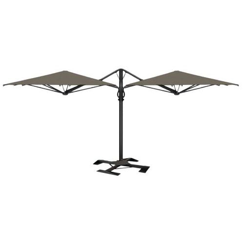 Composé de 2 parasols de 3,5x3,5 m, accrochés sur un seul mât de 110x110 cm.