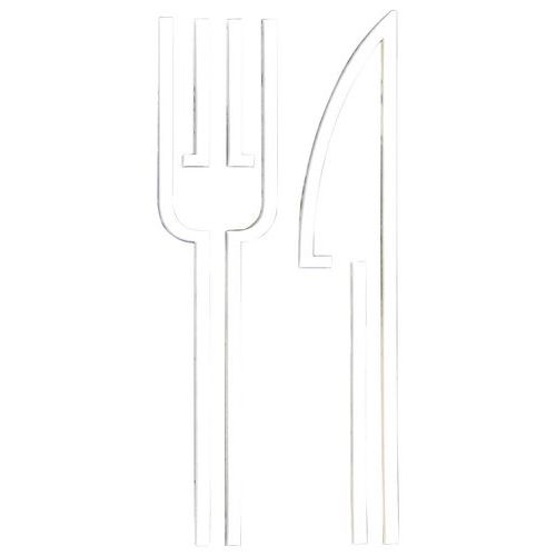 Pictogramme acrylique en relief restaurant, Matériau: Acrylique, Hauteur: 120 mm, Coloris: Blanc