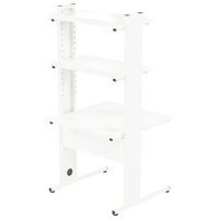 Poste informatique Léo 3 niveaux dont 2 réglables en hauteur tous les 5 cm. Panneau de particules agglomérées haute densité (680 kg/m3) et classé non feu catégorie M3 revêtu de mélaminé ép 25mm. Tablettes supérieures profondeur 45 cm avec rebord arrière anti- chute. Pieds acier avec obturateur passe câble en partie basse et enjoliveur amovible sur toute la hauteur pour la remontée des cables aux différents niveaux. Voile de fond pour rigidifier l’ensemble de la structure. Vérins de réglage course de 15 mm.