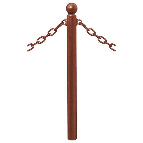 Potelet Province à chaines 2 anneaux pommeau boule, Poteau Ø: 7.6 cm, Coloris: Marron