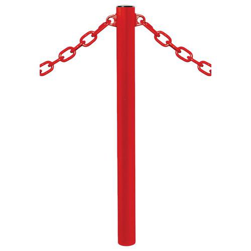 Potelet Province à chaines 2 anneaux pommeau inox brossé, Poteau Ø: 7.6 cm, Coloris: Rouge