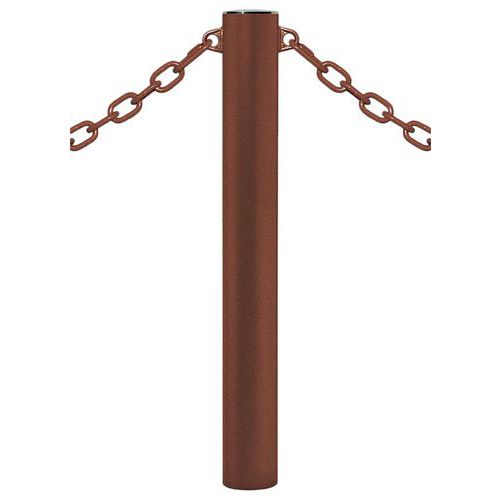 Potelet Province à chaines 2 anneaux pommeau inox brossé, Poteau Ø: 11.4 cm, Coloris: Marron