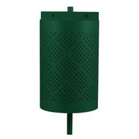 Livrée avec une clé triangulaire pour la vidange de la poubelle par le fond. Tôle acier électrozingué 10/10ème à perforations Ø 9 mm, épaisseur 1 mm. Revêtement polyester. Vis de fixation non fournis. Fabriqué en France Garantie client : 3 ans