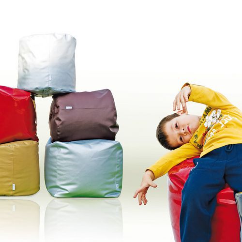 - Pouf Cilindro enduit PVC souple aspect grain cuir et classement non feu M1.