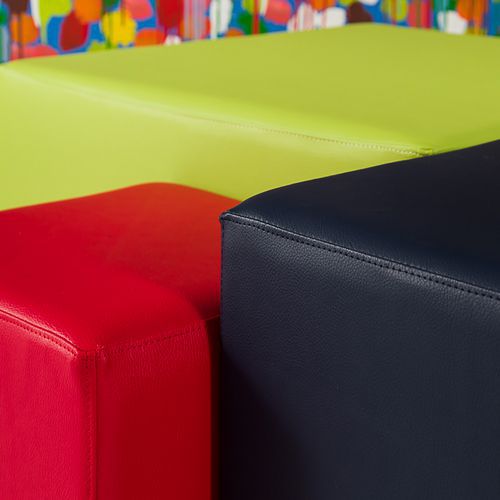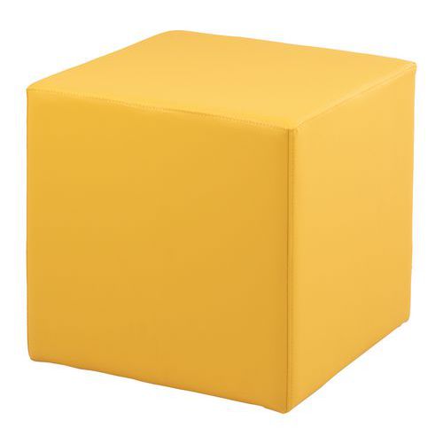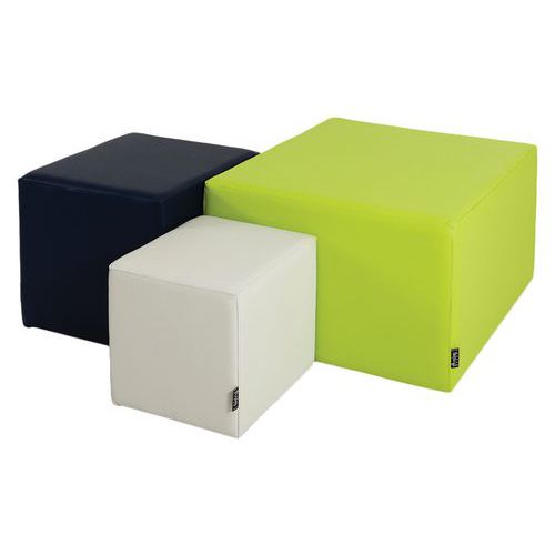 - Pouf Cubo enduit PVC souple aspect grain cuir et classement non feu M1.