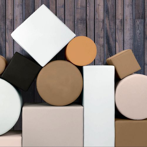 - Pouf Tape enduit PVC souple aspect grain cuir et classement non feu M1.