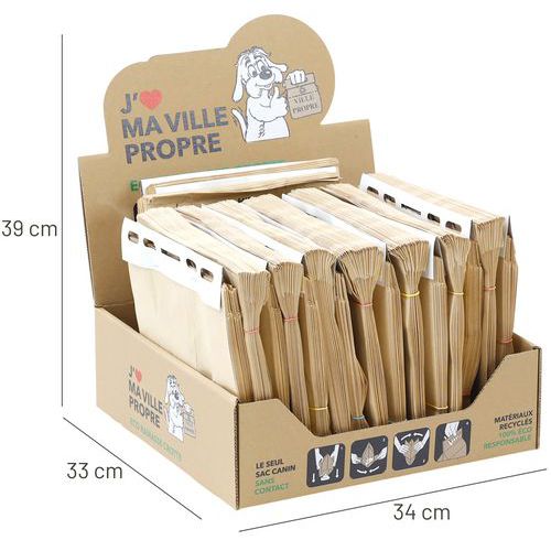 | Intitulé du produit | Présentoir de ramasse crotte cartonné 240 sachets, Nb de sacs: 240, Matériau: Carton, Coloris: Marron |