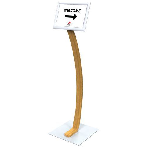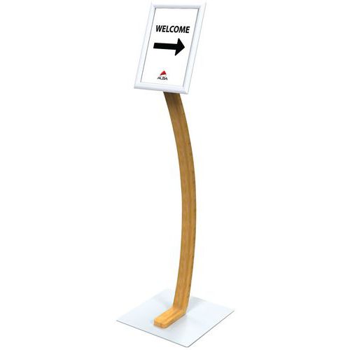 - Présentoir de signalétique Signa bi-matière bois et acier blanc design pour mettre en valeur vos documents