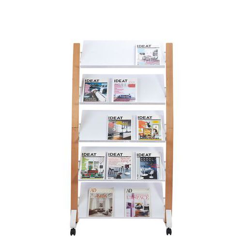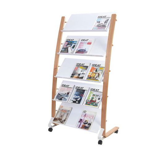 Présentoir de sol mobile 5 étagères Alba, Nb de tablettes: 5, Coloris: Hêtre Blanc, Largeur hors tout: 83 cm