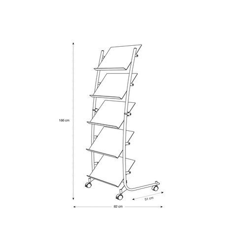 | Intitulé du produit | Présentoir mobile GM 5 niveaux Alba, Nb de tablettes: 5, Coloris: Gris clair, Largeur hors tout: 82 cm |