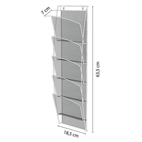 - Présentoir mural 5 compartiments dont la structure Mesh (acier perforé) le rend très résistant