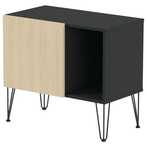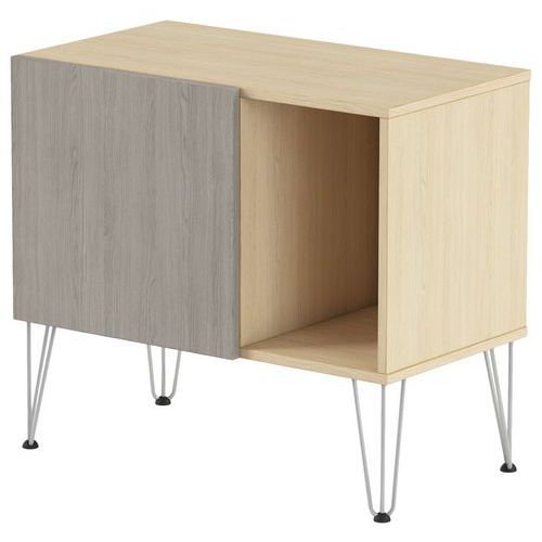 Les meubles d'appoint de la gamme Java sont parfaits pour agrémenter vos halls d'accueil, disponibles dans de multiples versions Panneaux en aggloméré épaisseur 19 mm haute densité (680kg/m3), chant épaisseur 2 mm finition mélaminée. Piètement fils d'acier étirés de 25 cm de haut soudés sur platine et patins de protection du sol. Porte sans poignée avec système d’ouverture « push to open » : qui consiste à appuyer sur la porte pour l’ouvrir grâce à un poussoir avec ressort intégré. Garantie client : 10 ans Montage : À monter