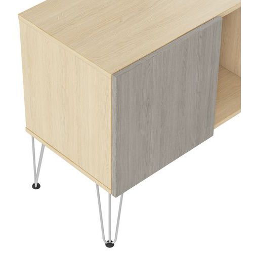 Les meubles d'appoint de la gamme Java sont parfaits pour agrémenter vos halls d'accueil, disponibles dans de multiples versions Panneaux en aggloméré épaisseur 19 mm haute densité (680kg/m3), chant épaisseur 2 mm finition mélaminée. Piètement fils d'acier étirés de 25 cm de haut soudés sur platine et patins de protection du sol. Porte sans poignée avec système d’ouverture « push to open » : qui consiste à appuyer sur la porte pour l’ouvrir grâce à un poussoir avec ressort intégré. Montage : À monter Garantie client : 10 ans