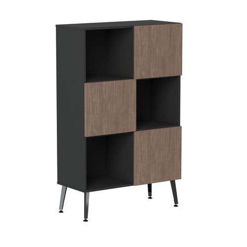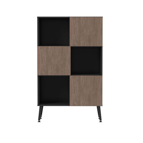 Rangement mi haut Teni 3 portes 3 cases en damier hauteur 160 cm. Panneaux en aggloméré ép 19 mm haute densité (680kg/m3), chant ép 2 mm finition mélaminée non feu catégorie M3. Portes avec systéme push to open . Piètement en tôle pliée épaisseur 2 mm de forme V. 4 vérins permettent un réglage jusqu’a 15 mm pour corriger le dénivelé du sol.