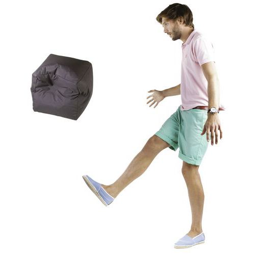 Repose-pied design déhoussable. Pratique, polyvalent et ultra confortable. Transport facile. Composition : Housse externe : 100 % polyester enduit PVC. Housse interne : Polyester microfibre. Garniture : Billes d’ameublement entières à mémoire de forme, 100% polystyrène, vierges et sans résidus. Dimensions : longueur 40 cm, largeur 40 cm, hauteur 40 cm. Contenance : 60 L. Poids : 1.45 kg. Garantie client : 2 ans