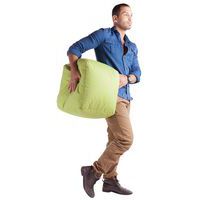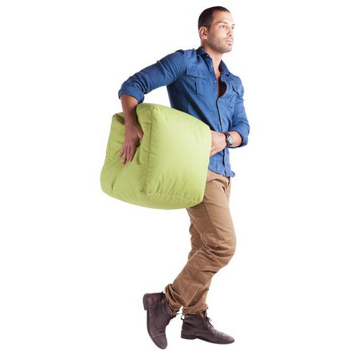Repose-pied design déhoussable. Pratique, polyvalent et ultra confortable. Transport facile. Composition : Housse externe : 100 % polyester enduit PVC. Housse interne : Polyester microfibre. Garniture : Billes d’ameublement entières à mémoire de forme, 100% polystyrène, vierges et sans résidus. Dimensions : longueur 40 cm, largeur 40 cm, hauteur 40 cm. Contenance : 60 L. Poids : 1.45 kg.