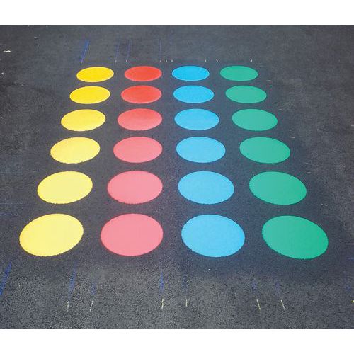 Bon apprentissage des couleurs avec les 6 ronds rouges, 6 bleus, 6 jaunes et 6 verts.