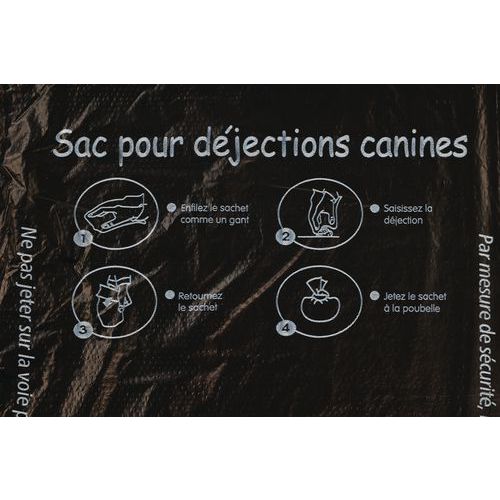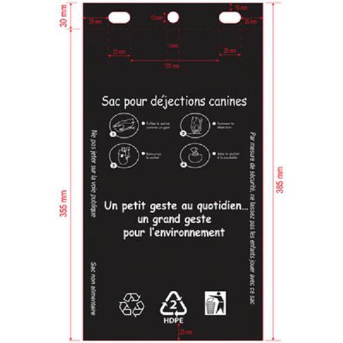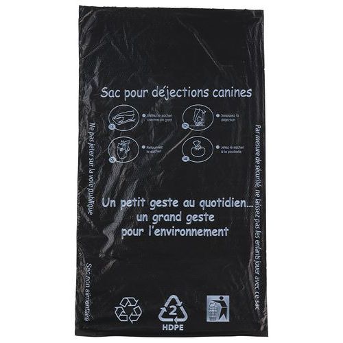 | Intitulé du produit | Sacs de déjections canines PEHD noirs 3 perçages, Type de déchet tri sélectif: Canin, Coloris: Noir |