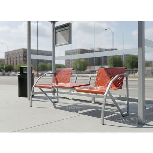 Fabrication française. Structure métal revêtue époxy coloris aluminium. Coque tôle perforée galbée. Piètement formant accoudoirs Service installation/montage : Option montage Garantie client : 10 ans