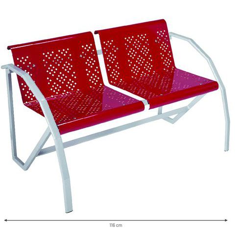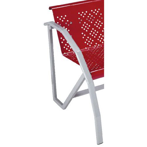 Fabrication française. Structure métal revêtue époxy coloris aluminium. Coque tôle perforée galbée. Piètement formant accoudoirs Service installation/montage : Option montage Garantie client : 10 ans