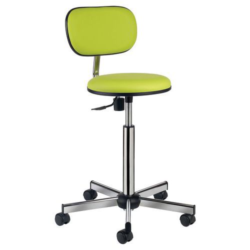 - Le siège Labo a une assise réglable en hauteur commandée par manette ainsi que le dossier par molette