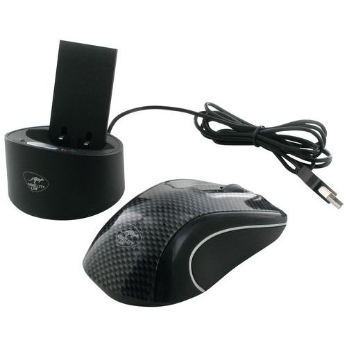 | Intitulé du produit | Souris sans fil rechargeable Finition carbon, Type de capteur: Optique |