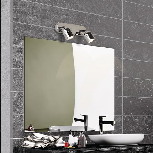 Spot 2 lumières base rectangulaire et abat-jour en métal chrome Corep, Fréquence d'utilisation: Régulière