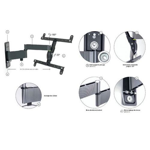Support écran mural EXO TW2, Lieu de fixation: Mur, Écran orientable: oui, Hauteur réglable: non