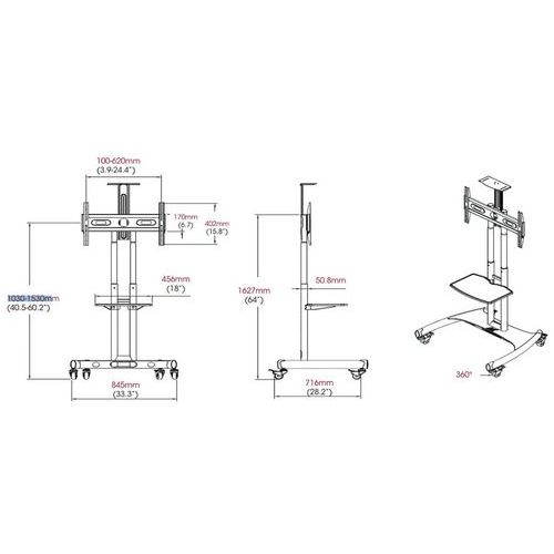 | Intitulé du produit | Support mobile TRVT561, Hauteur réglable: oui, Nb de tablettes: 1, Système de réglage: Manuel |