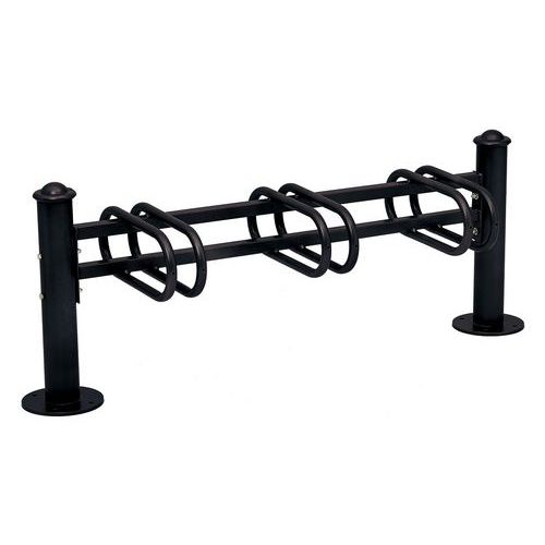- Support vélos Province simple face 3 places en acier Ø 76 mm, arceaux Ø 22 mm.