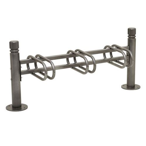 - Support vélos Province simple face 3 places en acier Ø 76 mm, arceaux Ø 22 mm.