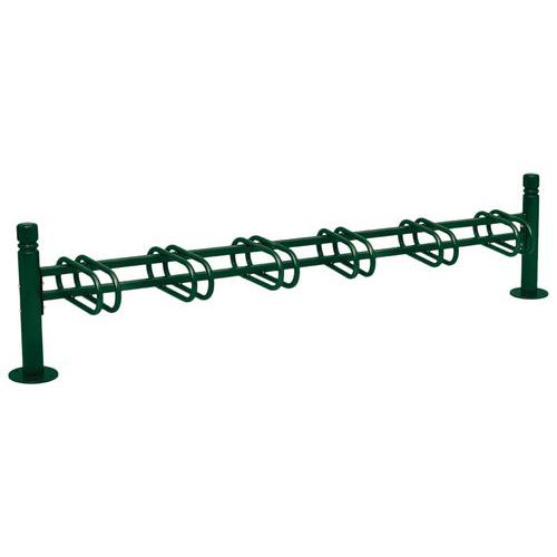 - Support vélos Province simple face 6 places en acier Ø 76 mm, arceaux Ø 22 mm.