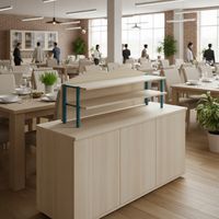 Surmeuble de buffet Malibu 3 portes fond bois, Coloris: Acacia, Piétement coloris: Bleu Surmeuble de buffet Malibu 3 portes fond bois, Coloris: Acacia, Piétement coloris: Bleu
