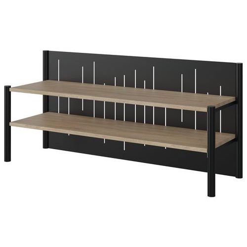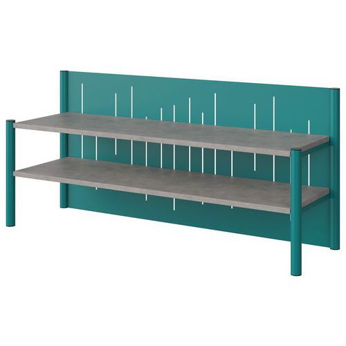 Surmeuble Malibu avec 2 étagères 135.8 x 41 cm, mélaminé 2 faces, épaisseur 19 mm ABS. Structure tube acier Ø 40 mm, épaisseur 1,5 mm. Support tablettes tôle acier pliée, épaisseur 1 mm, rivetée aux piètements et vissés aux étagères bois. Soudure avec apport de matière. Embouts polyéthylène noir non tachant, non marquant. Poudre époxy. Fabriqué en nouvelle Aquitaine Livré monté. Autres coloris disponibles sur demande.