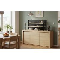Surmeuble de buffet Malibu 3 portes fond tôle, Coloris: Chêne, Piétement coloris: Noir Surmeuble de buffet Malibu 3 portes fond tôle, Coloris: Chêne, Piétement coloris: Noir