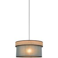 - Suspension cylindre bi-matière raphia et coton , équipée d'un cordon noir hauteur 80 cm.